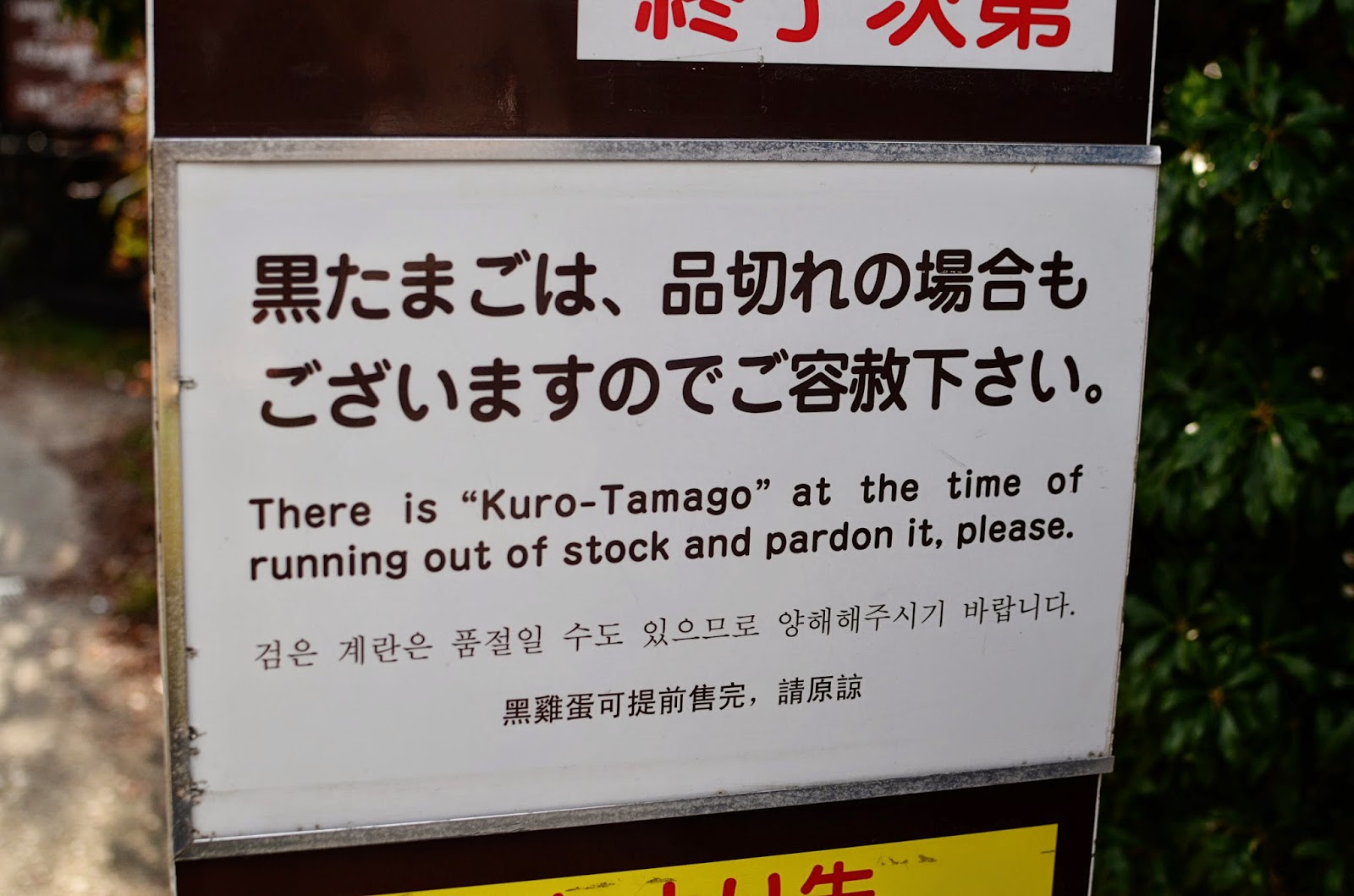 this sign about the 'kuro-tamago' (black egg) kills me. I LOVE their translations.